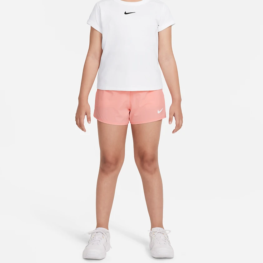 Nike Girls’ Dri-FIT Victory Shorts (Bleached Coral/White) Details: