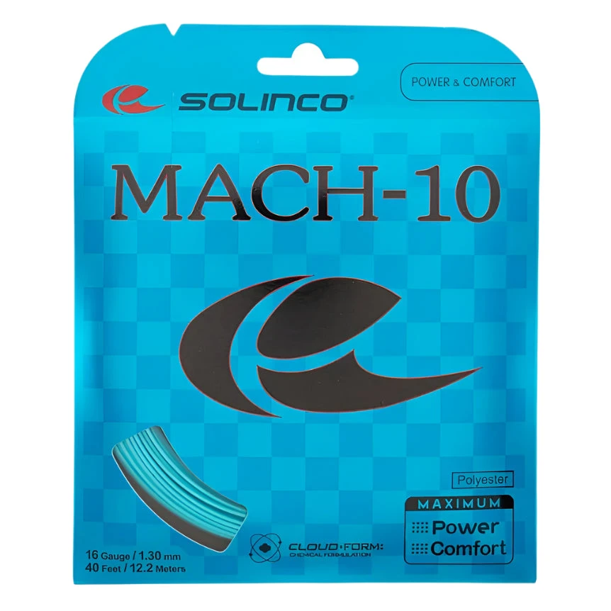 Mach-10 is Solinco’s newest co-polyester string, engineered for explosive power, superior feel, and long-lasting playability. At its core is the CloudFORM technology—an innovative chemical formulation that gives Mach-10 its best-in-class power, comfort, and tension maintenance.