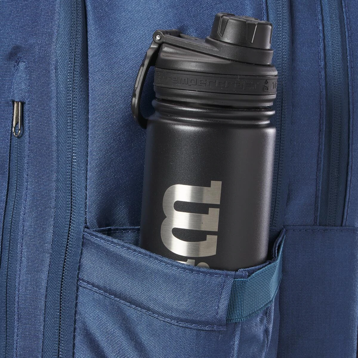- Exterior water bottle pocket